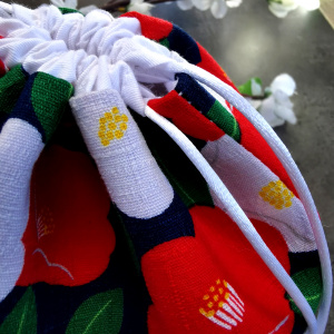 MisakiPetit sac japonais en forme de bourse de couleur bleu marine avec motifs de mont fleurs de camélia rouge et blanche. Réalisé avec un tissu japonais en coton et une doublure en coton de couleur blanche. Finition main, le tissu à motif est renforcé avec un thermocollant pour un meilleur maintien et une meilleure solidité. Le terme Misaki employé ici pour dénommé le présent sac provient du prénom japonais "Misaki, 美咲 " qui signifie belle fleur d'arbre en référence aux tissus choisis pour ce type de sac. Dimension : 21*14 cm Entretien : 100% Coton12,00€